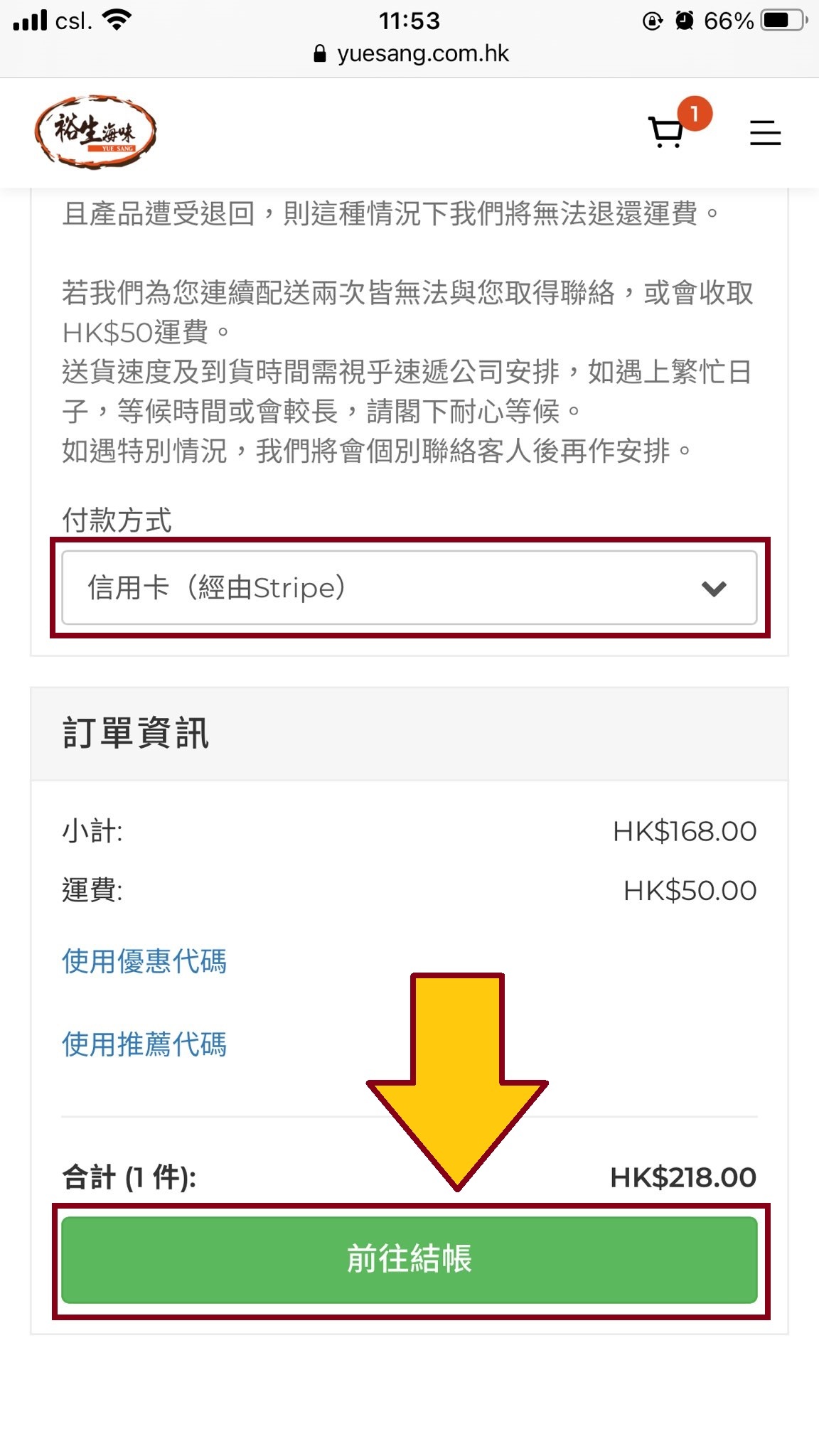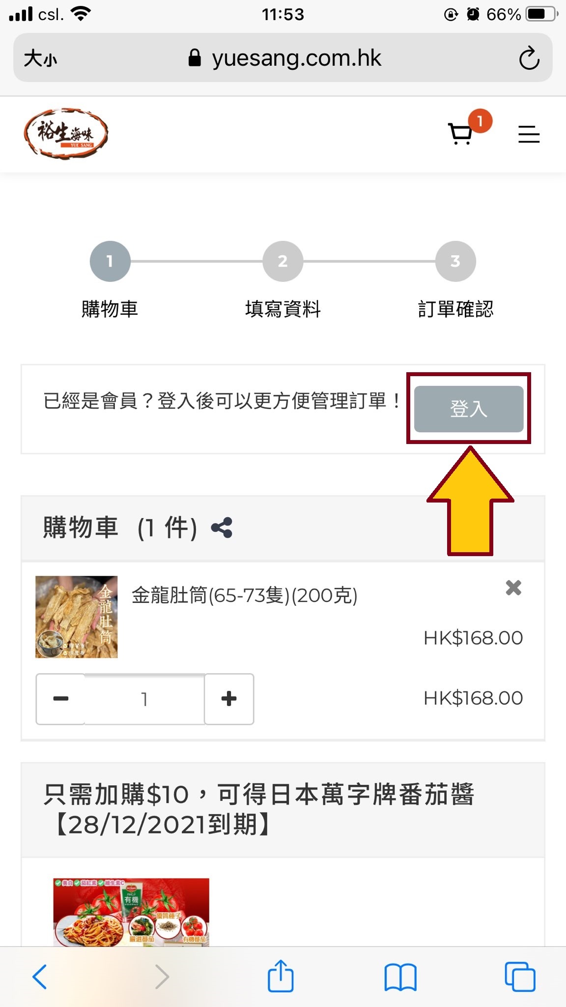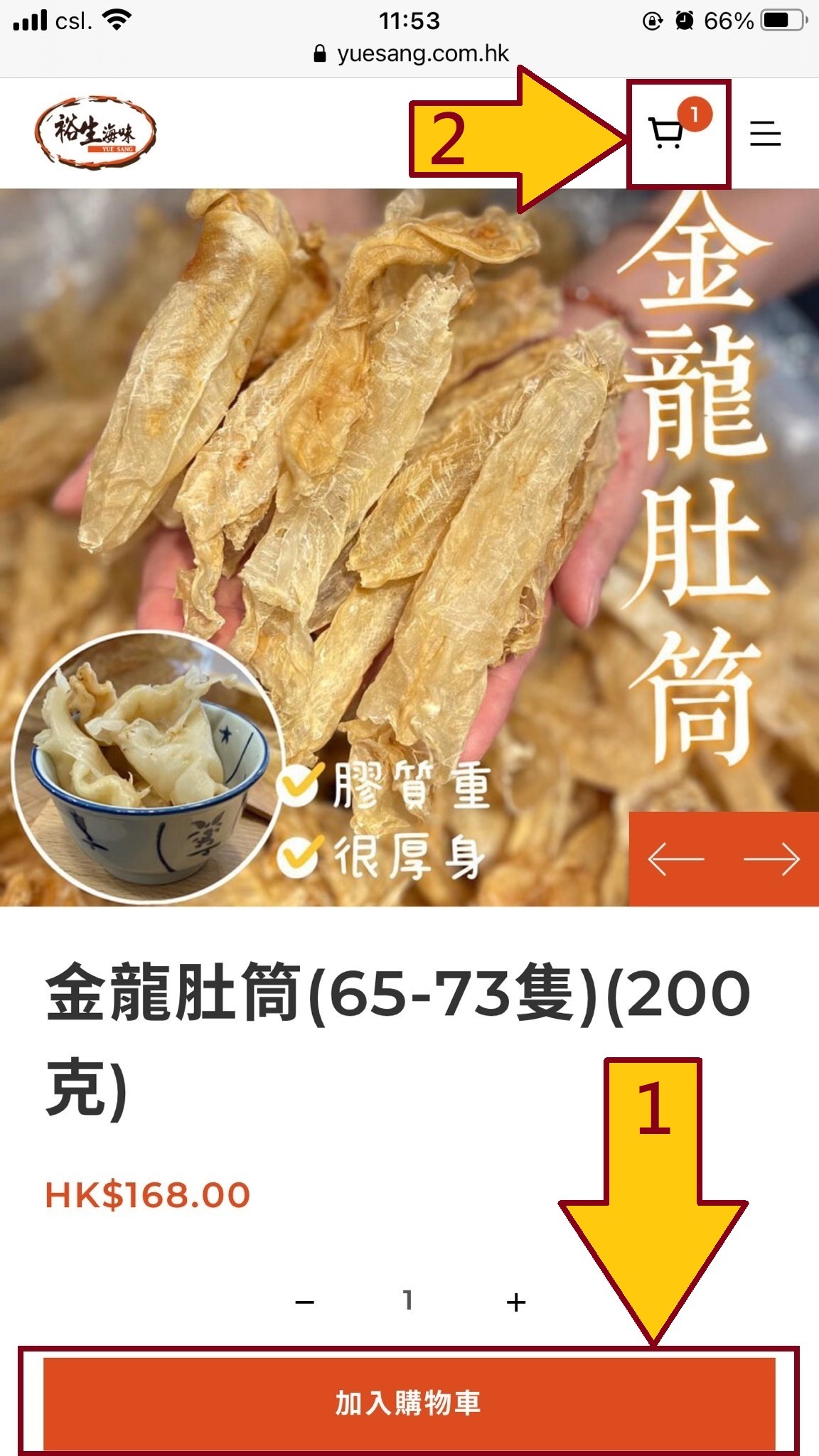 1. 選購心水產品後按<加入購物車>