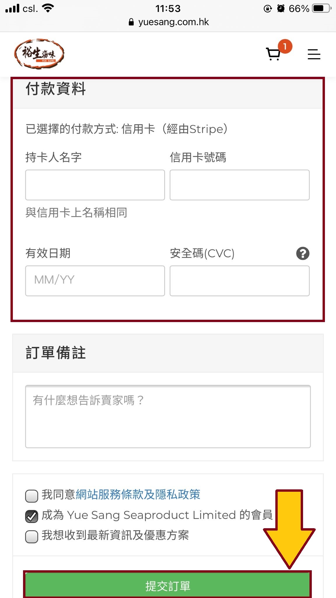 9. 填寫收件人資料 (選擇信用卡付款之客人需額外填寫所關資料)
